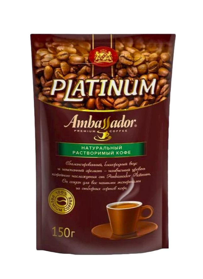 Откройте для себя идеальный вкус настоящего кофе всего одним движением! Советуем попробовать «Ambassador Platinum» – это ароматное удовольствие теперь доступно каждому благодаря удобной форме упаковки и отменному качеству российского производства. Приятный насыщенный вкус и мягкий аромат подарят вам заряд бодрости и отличное настроение на весь день. Удобная упаковка по 150 грамм позволяет всегда иметь любимый напиток под рукой. Наслаждайтесь каждым моментом вместе со «Platinum»!